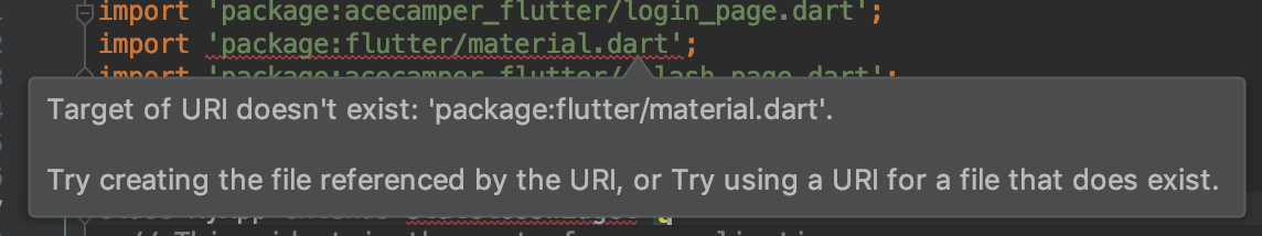 Target of URI doesn't exist 'package:flutter/material.dart'