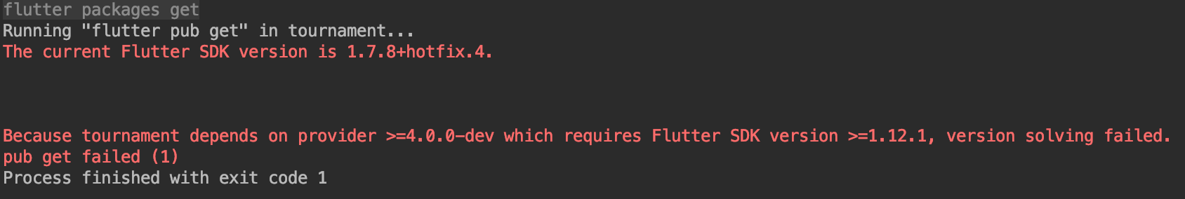 provider를 사용하기 위해 pubspec.yaml에 넣고 packages get을 누르니 아래와같은 에러가 나타났네요.