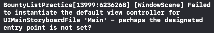 Failed to instantiate the default view controller for UIMainStoryboardFile 'Main'