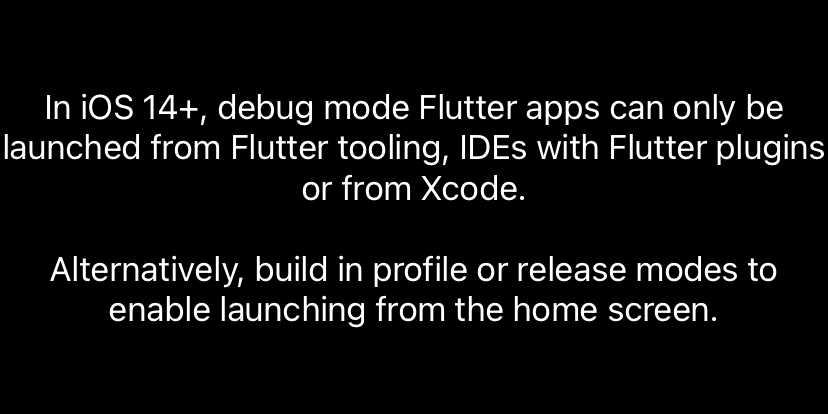 [flutter] In iOS 14+, debug mode Flutter apps can only be launched from Flutter tooling...flutter/flutter 에러 2021. 1. 29. 15:24