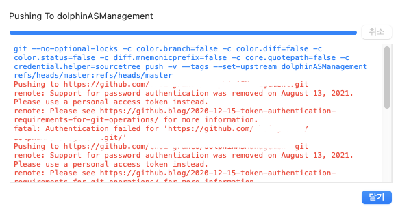 저는 소스트리를 맥북프로에서 사용하고 있어서 기존에 저장된 비밀번호가 존재하여 비밀번호를 다시 물어보지 않고 계속 에러 구문만 나타나서 추가적인 작업을 진행하였습니다.