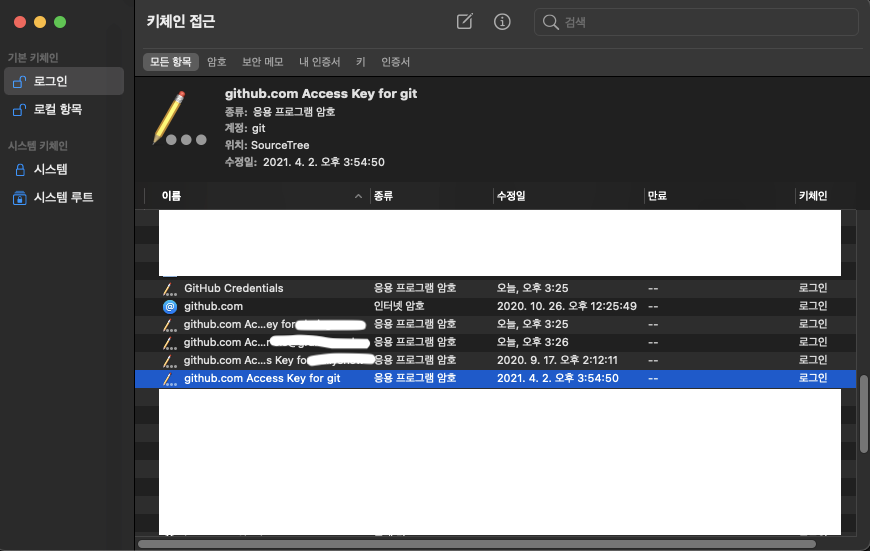 키체인에서 로그인 항목 'git > github 에러' 카테고리의 다른 글