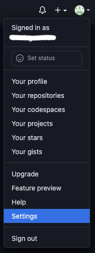 1. 깃 허브에 로그인 한 후 오른쪽 프로필 사진을 클릭 -> settings 를 선택합니다.