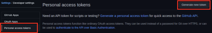 3. Personal access token 을 선택하고 Generate new token 을 선택해줍니다.