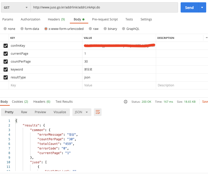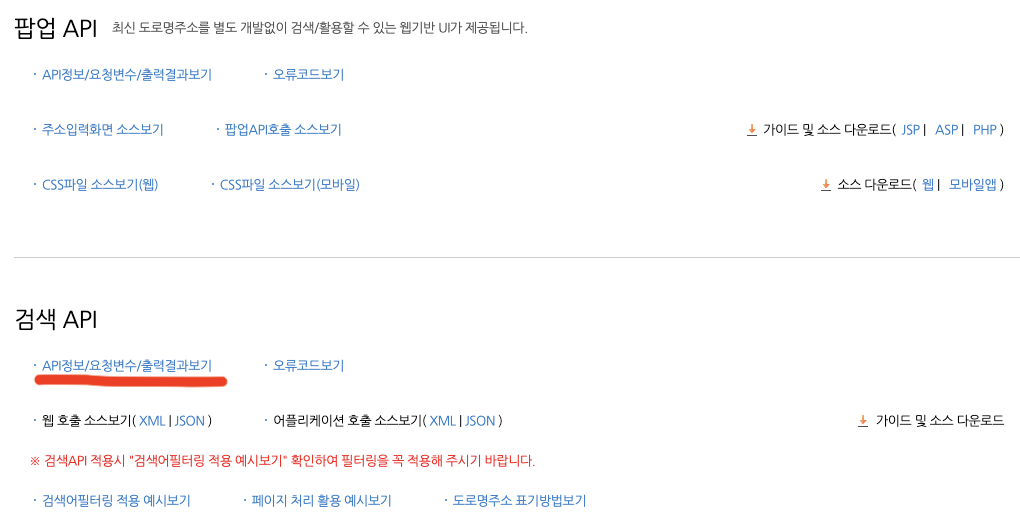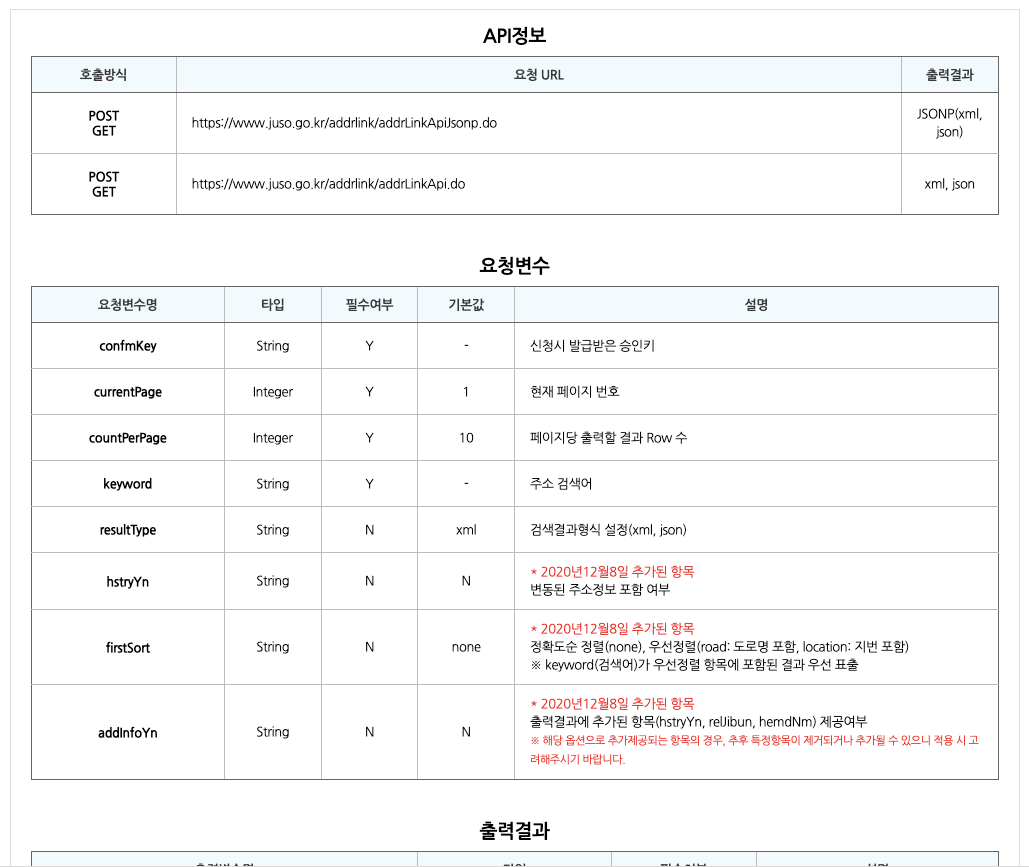 추후 똑같은 삽질 방지 및 주소연동 API 테스트가 수월치 않은 분들에게 조금이나마 도움이 되면 좋을것같아서 작성하였습니다.