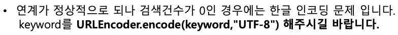 post 전송 결과 인증키값 제대로 넣고 나머지 값들도 이상없는거 같은데 검색어가 입력되지 않았다고 나오네요.