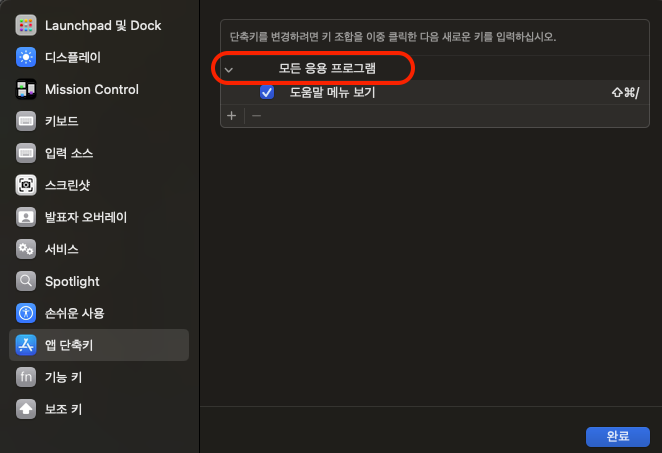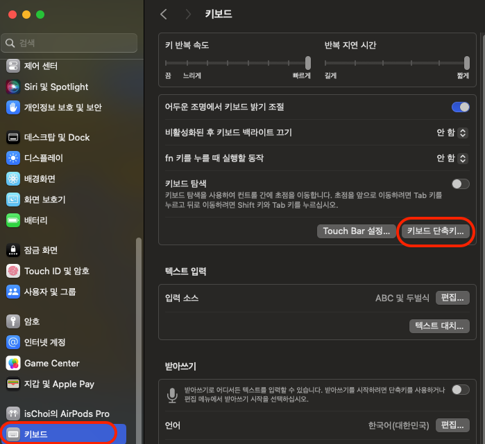 ※ Sonoma 로 업데이트 되면 해당 단축키가 동작하지 않습니다. 추가적인 설정이 필요합니다.