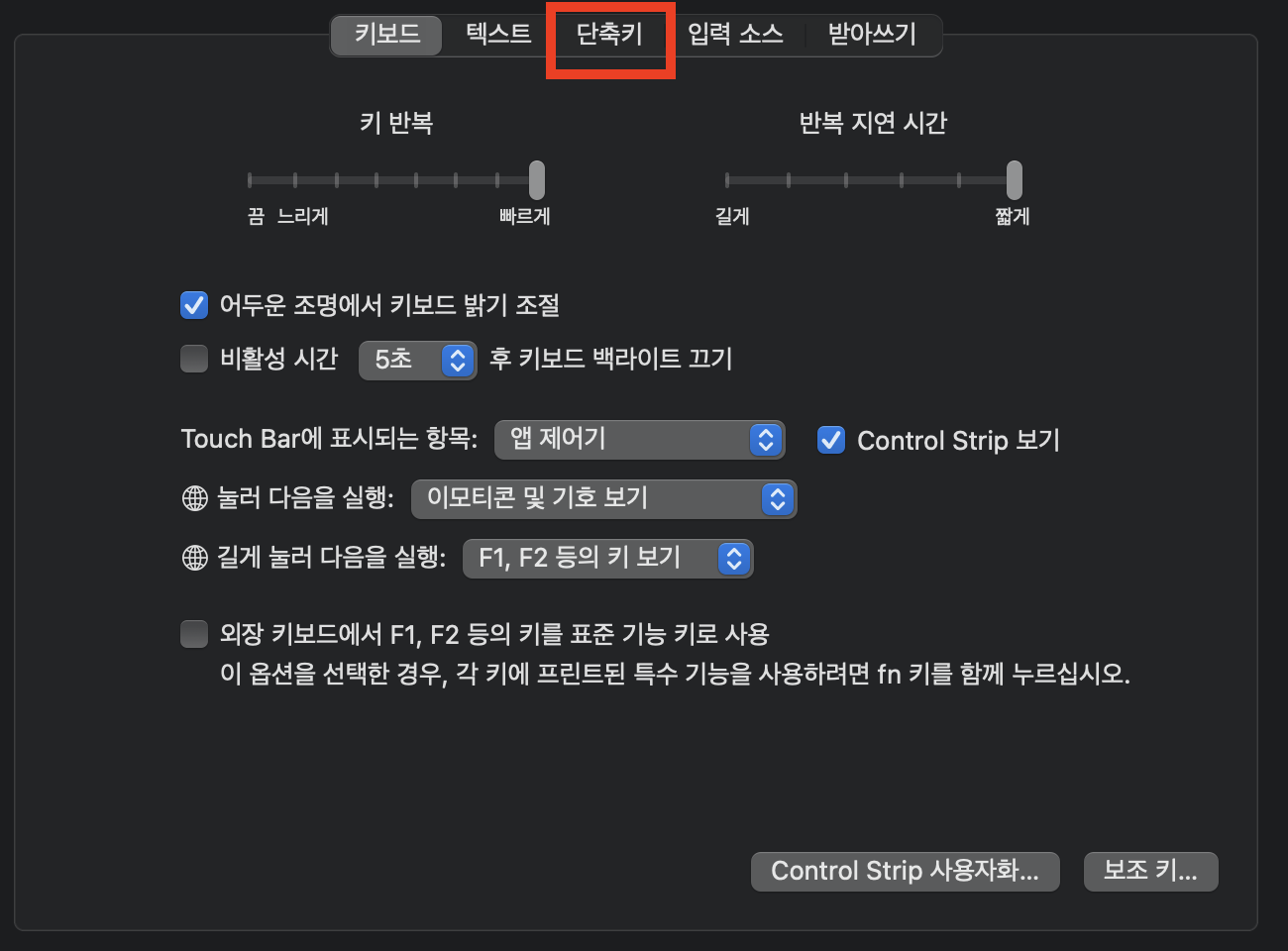 4. 키보드 -> 키보드 단축키