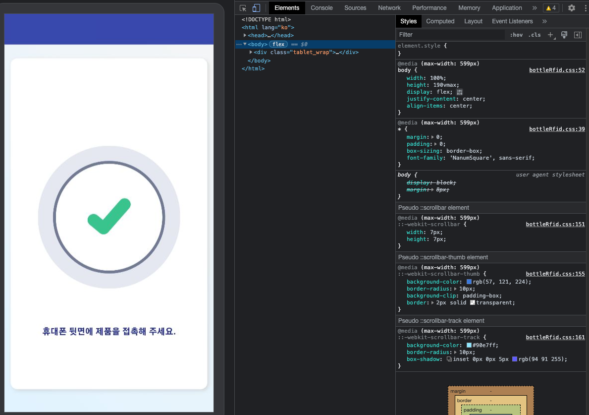 웹뷰 상태 확인 이제 요소들 내용을 확인해볼 수 있으니까 문제점을 파악해서 javascript 또는 css 를 수정하면서 작업하면 문제점들을 해결할 수 있습니다.