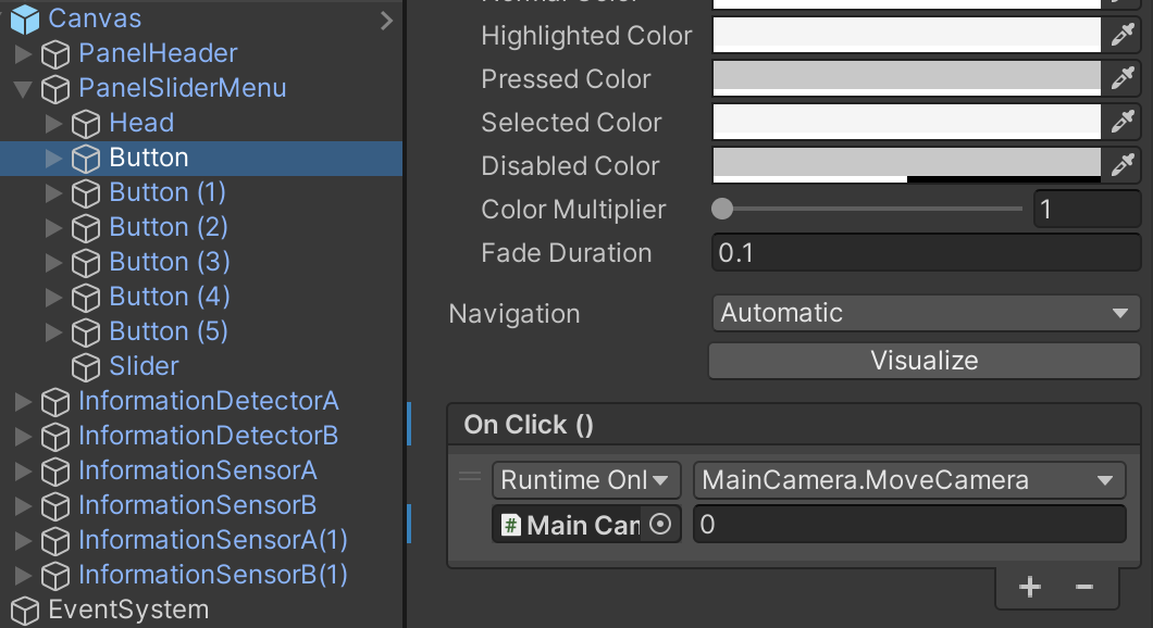 유니티에서 button 을 생성한후 버튼을 누르면 subCameras 배열 번호의 서브카메라로 이동하게 됩니다.