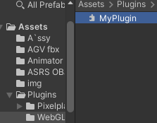 mergeInto(LibraryManager.library, { Hello: function () { window.alert("Hello, world!"); }, HelloString: function (str) { window.alert(UTF8ToString(str)); }, PrintFloatArray: function (array, size) { for(var i = 0; i < size; i++) console.log(HEAPF32[(array >> 2) + i]); }, AddNumbers: function (x, y) { return x + y; }, StringReturnValueFunction: function () { var returnStr = "bla"; var bufferSize = lengthBytesUTF8(returnStr) + 1; var buffer = _malloc(bufferSize); stringToUTF8(returnStr, buffer, bufferSize); return buffer; }, BindWebGLTexture: function (texture) { GLctx.bindTexture(GLctx.TEXTURE_2D, GL.textures[texture]); }, });<unity project 에 저장된 상태 MyPlugin.jslib>