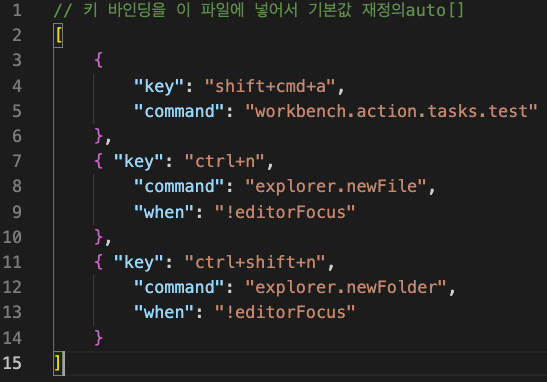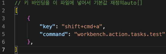 2. keybindings.json 에 내용 추가