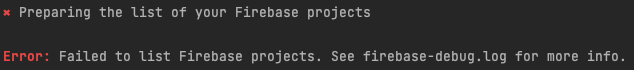 firebase 연동하기 위해 firebase login 하고 리스트 확인하려고 fireabse projects:list 를 입력했는데 위와 같은 에러가 나타났습니다.