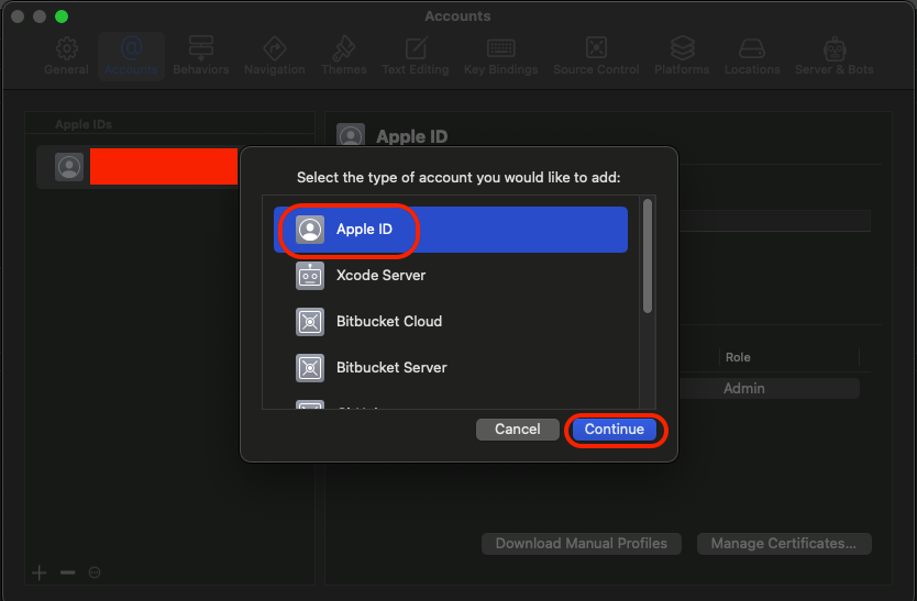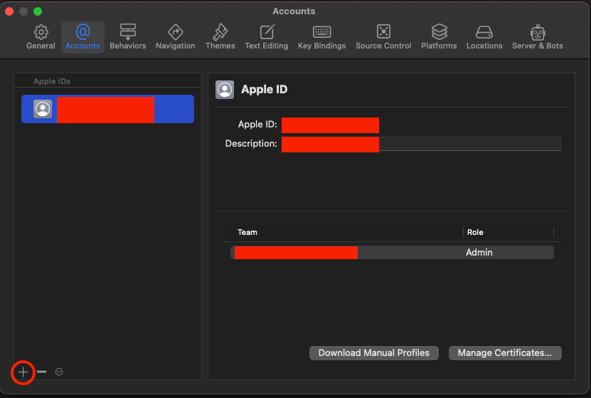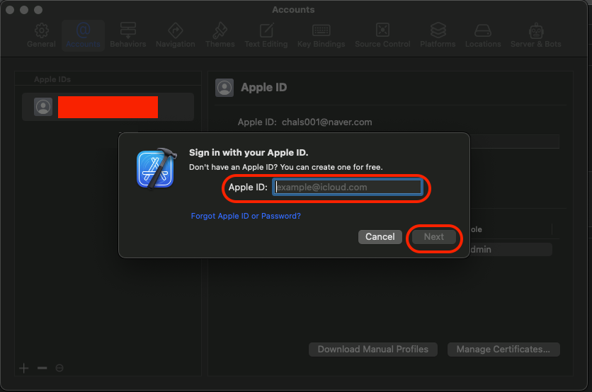 아래부터는 새로 만든 계정을 xcode 에서 등록한 방법을 기록했습니다.