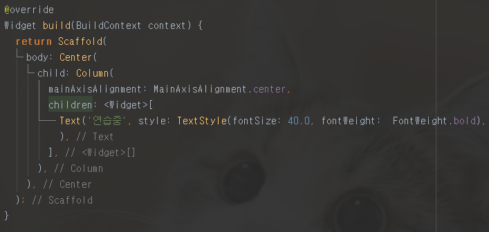 [flutter] 플러터 괄호(대,중,소괄호) 뒤에 자동으로 해당 내용 주석 달기flutter/flutter 기타 등등 2019. 5. 28. 16:05